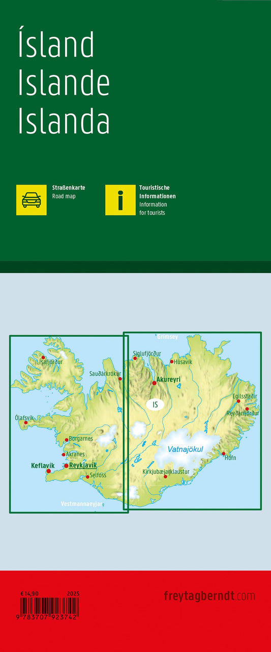 FREYTAG-BERNDT Ísland vegakort 2025, softcover - 1:400.000 (20)